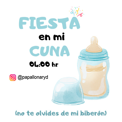¡Prepárate para la diversión nocturna con nuestro adorable y divertido body de bebé blanco Fiesta en mi Cuna! La imagen nos muestra un body de manga corta de color blanco puro, que sirve como el lienzo perfecto para un diseño que arrancará sonrisas. En el pecho, un mensaje ingenioso y entrañable: «FIESTA en mi CUNA 01.00 hr», acompañado de una ilustración de un biberón azul, y la simpática advertencia «¡no te olvides de mi biberón!)». Es el regalo ideal para los padres con sentido del humor que entienden las «fiestas» nocturnas de sus pequeños.