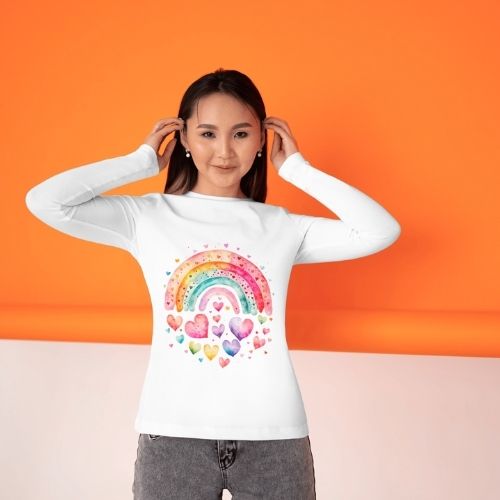 Abrígate con un mensaje de alegría y afecto con nuestra camiseta de manga larga Arcoíris de Amor.
