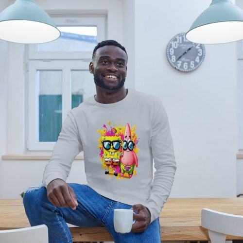 Sumérgete en la diversión con nuestra camiseta de manga larga de Bob Esponja y Patricio Hipster.