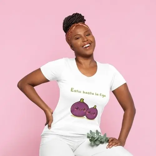 Este diseño combina lo mejor de dos mundos: una estética kawaii irresistible con dos higos adorables y una frase que es puro sentimiento mediterráneo. Estic hasta la figa es esa mezcla perfecta de valenciano y castellano que define a la perfección ese estado mental de «ya basta», pero con un envoltorio tan cuqui que nadie podrá enfadarse contigo.