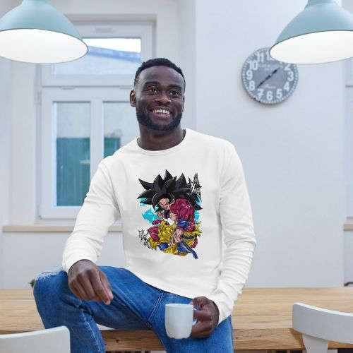 Eleva tu ki al máximo con nuestra camiseta de manga larga de Goku Super Saiyan 4. Esta prenda presenta una ilustración dinámica y poderosa de Goku en su legendaria transformación de Dragon Ball Z.