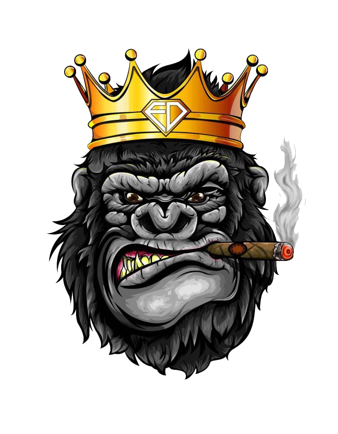 - Diseño Exclusivo y Potente: Un gorila con corona y puro que transmite fuerza, autoridad y carácter.
