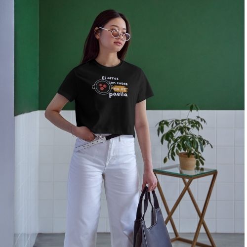 ¡Para los puristas de la paella y los que saben la diferencia! Nuestra camiseta de manga corta con la divertida y reivindicativa frase «El arroz con cosas no es paella», acompañada de una ilustración de una paella con ingredientes incorrectos, es perfecta para expresar tu amor por la auténtica paella valenciana. Si te indigna ver cómo se malinterpreta este plato tradicional, esta camiseta es para ti. Lleva con orgullo un mensaje que seguro generará sonrisas y debates sobre la verdadera esencia de la paella.