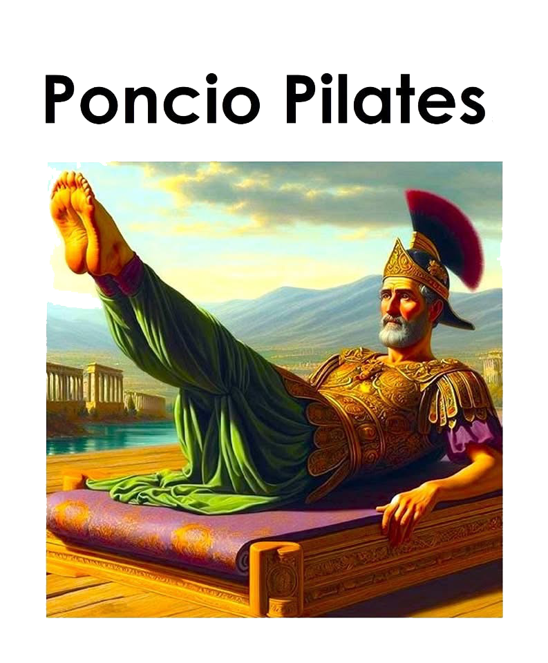 En la parte superior, el texto «Poncio Pilates» en una fuente clara y elegante remata el chiste visual.