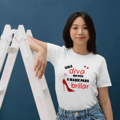 ¡Brilla con luz propia y sin pisar a nadie! Presentamos nuestra inspiradora camiseta «Una Diva No Pisa a Nadie para Brillar», el complemento perfecto para mujeres fuertes, seguras y empoderadas. Esta camiseta no es solo una prenda de vestir; es una declaración de principios, un mensaje de respeto y sororidad que te invita a celebrar tu éxito y el de los demás.