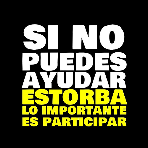 La frase final «LO IMPORTANTE ES PARTICIPAR» regresa al blanco, completando el mensaje con un toque de ironía que te hará sonreír.