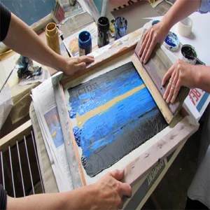 • Preparación de la Pantalla (Marco y Malla): Se selecciona una malla adecuada (el número de hilos por pulgada determina la finura del detalle que se puede imprimir) y se tensa uniformemente sobre un marco.